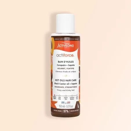 Le Bain d'Huiles Actiforce d’Activilong est un soin nourrissant et fortifiant conçu pour revitaliser les cheveux secs, fragiles et abîmés. Enrichi en Sapote et Carapate, deux huiles puissantes reconnues pour leurs propriétés réparatrices et nourrissantes, ce bain d’huiles pénètre en profondeur pour renforcer la fibre capillaire et redonner de la vitalité aux cheveux fragilisés.