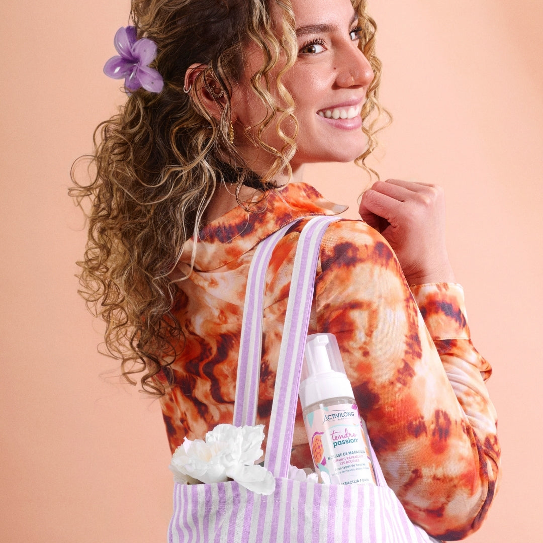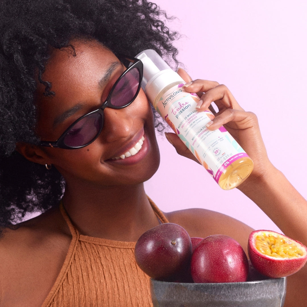 La mousse de maracuja ACTIVILONG Tendre Passion aide à définir les boucles tout en apportant volume et légèreté. Elle offre une tenue souple sans alourdir les cheveux.