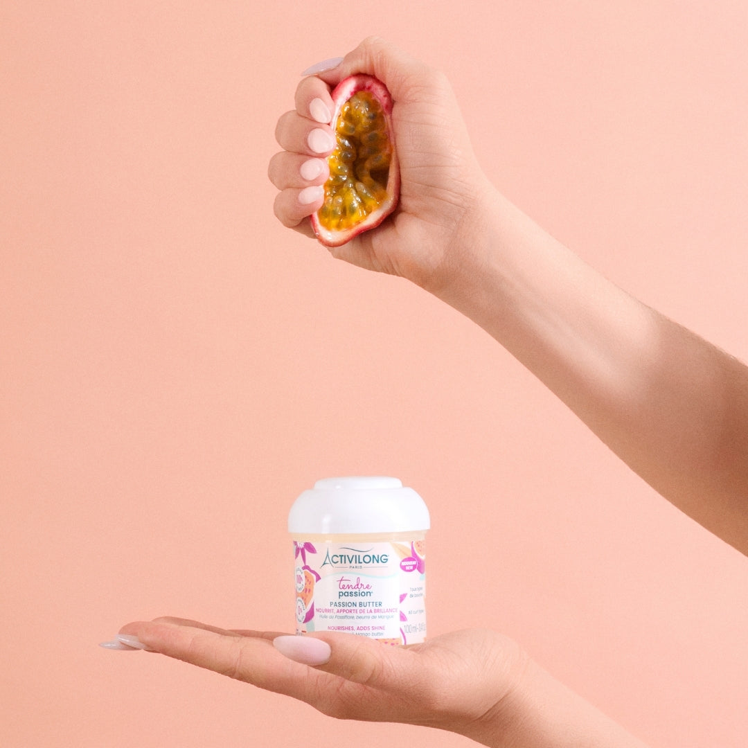Le passion butter ACTIVILONG Tendre Passion nourrit intensément les cheveux secs et fragiles. Ce beurre capillaire aide à sceller l’hydratation et apporte douceur et brillance aux cheveux bouclés et frisés.